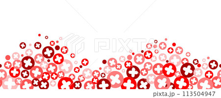 Medical cross and plus background. Abstract seamless red border for hospital healthcare and pharmacy. Geometrical shapes ornament. Vector wallpaper