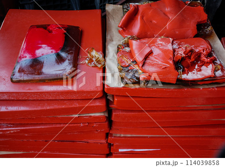 Waste production of gelatin capsules close-up.
