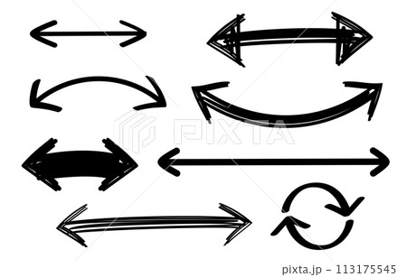 手書きの両矢印 左右矢印 ダブル 黒