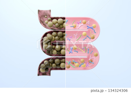 便秘と快便の腸内環境比較イラスト 善玉菌と悪玉菌のビフォーアフター