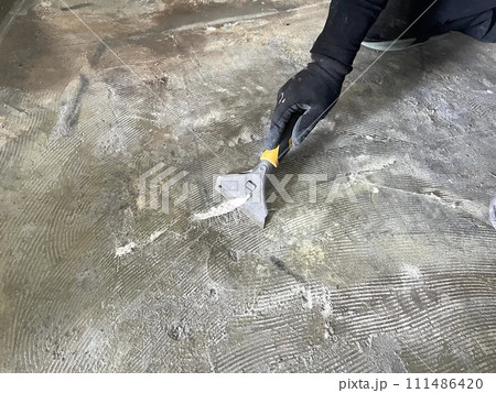 ペッカーを使用して床材剥がし