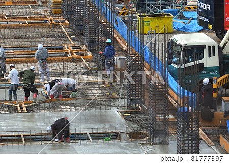 工事現場 基礎の生コン打設風景