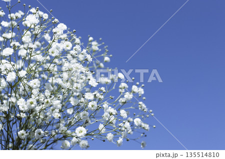 青い背景に白いカスミソウ 左寄せの余白背景素材