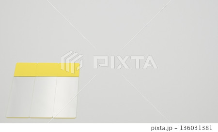 白背景の中段左寄せに縦置き配置されたスライドガラスのローアングル写真
