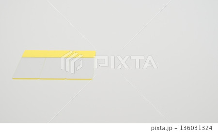 白背景の左寄せに横置きで並べたスライドガラス5枚の標準アングル写真