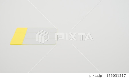 白背景の下段左寄せに縦置き配置されたスライドガラスのローアングル写真