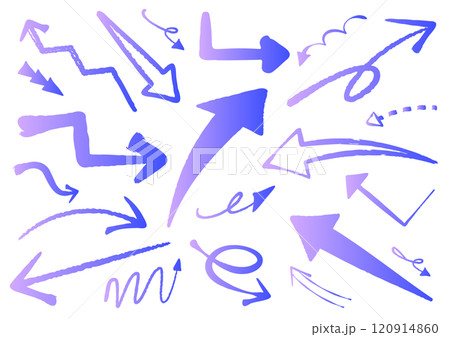 オレンジ色と紫の矢印バナー素材 右向き・左向きの3サイズセット