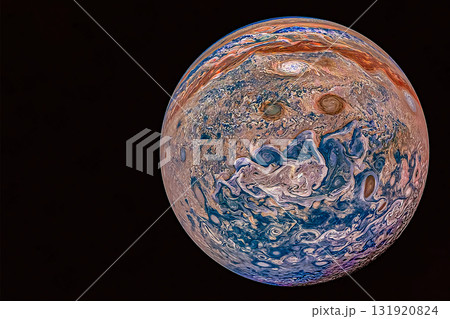 Planet Jupiter on a dark background. Elements of this image furnished by NASA