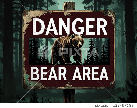 今にも襲いかかってきそうなリアルな熊のイラスト。