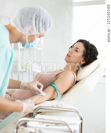 Girl doctor student at courses meeting listens to teacher and look at speaker