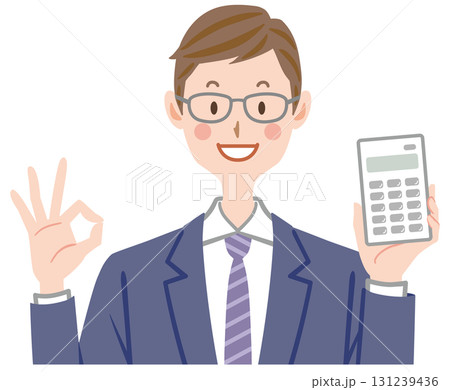 計算機を持つビジネスマンのイラスト OKサイン 電卓