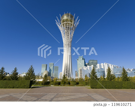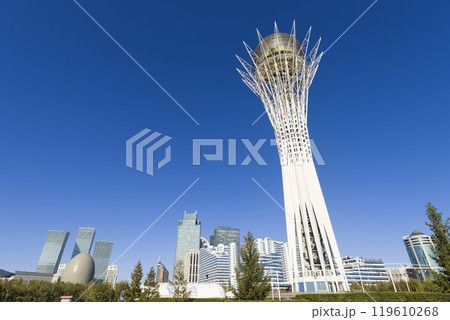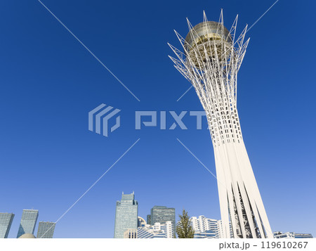 カザフスタン・アスタナ 青空に映えるバイテレクタワー / Astana, Kazakhstan