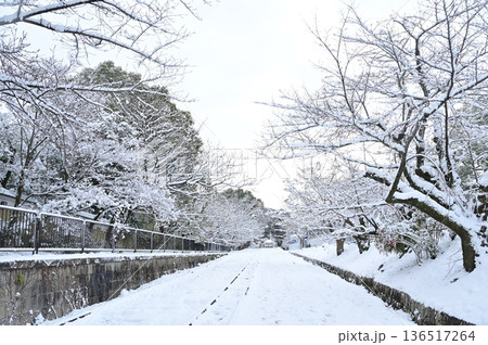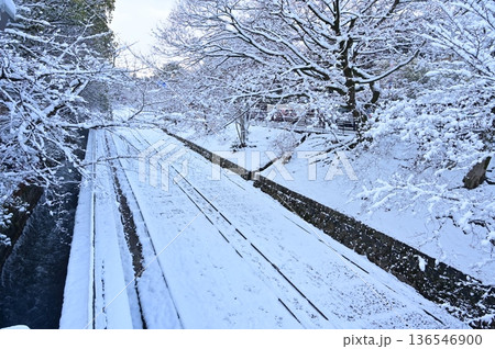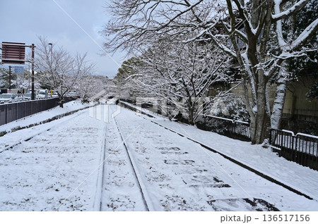 蹴上インクラインの雪景色と桜の木