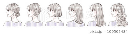 色々なヘアスタイルの女性イラストセット