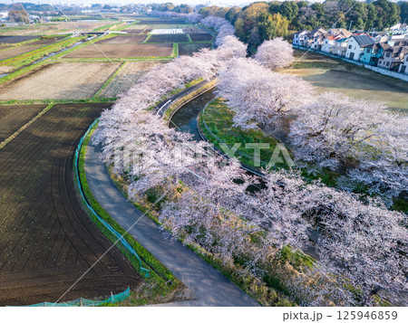 空撮「埼玉県」見沼田んぼの桜並木 さいたま市