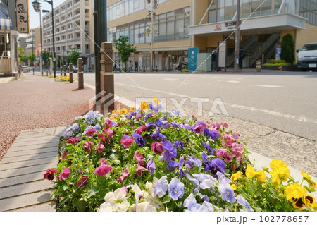 市が尾駅前の歩道沿いの花壇