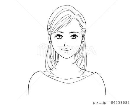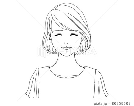 笑顔でホットドリンクを持つ夏服の女性(線画)