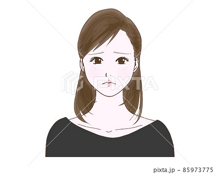 鉛筆を持つ困り顔の夏服の女性2(線画)