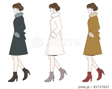 ダウンコートを着た女性②(マグカップ,ウインク)