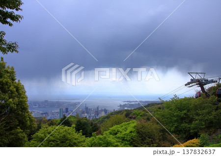 神戸布引ハーブ園 ロープーウェイより布引の滝と住宅地を望む