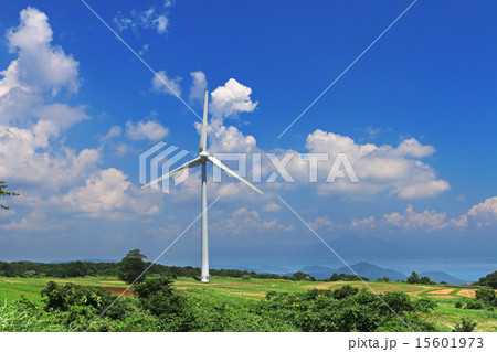 風車と入道雲 夏の風景 布引高原