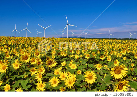 ひまわり畑と風車 夏の風景 布引高原