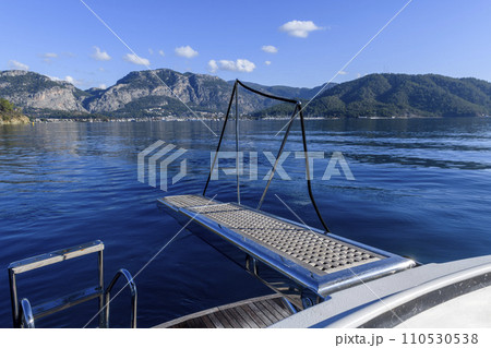 Super yacht wooden boarding gangway. Yacht ladder. Passerelle.