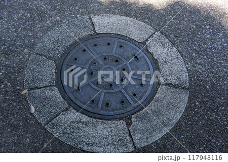 帝大の文字が残っているマンホールの蓋の画像素材(写真・イラスト) 1ページ目
