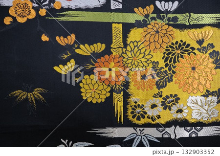 日本の紋様 絹織物 古布 帯地 刺繍 和柄