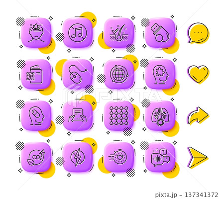 Flash memory, Timer and Anti-dandruff flakes line icons. App 3d buttons. Social media comment, share, like icons. Pack of Mental conundrum, Receive file, Antistatic icon. Vector