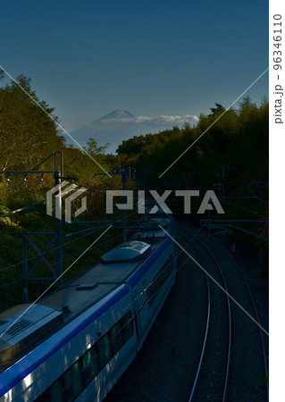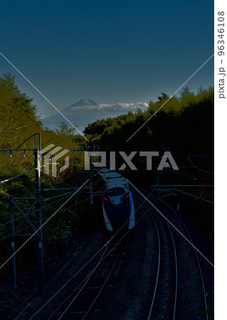 北杜市長坂町、富士をバックに進む下りスーパー特急あずさ