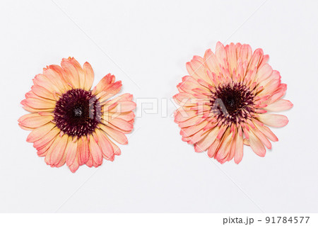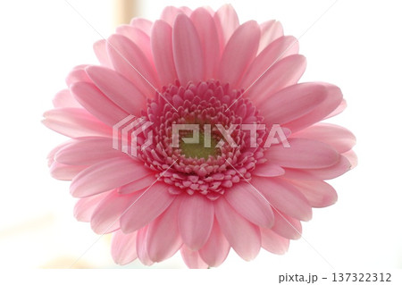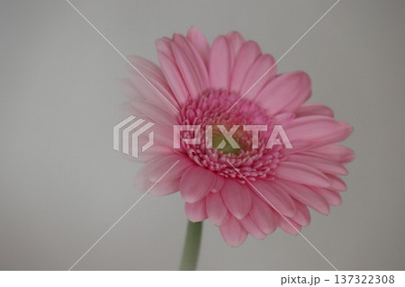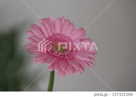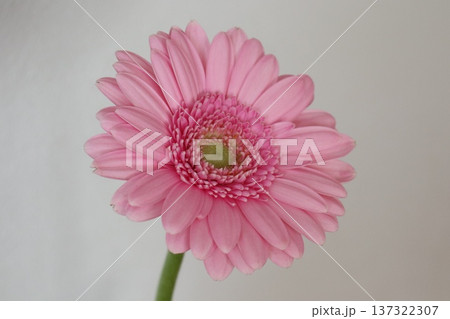 白い背景に映えるピンク色のガーベラの花