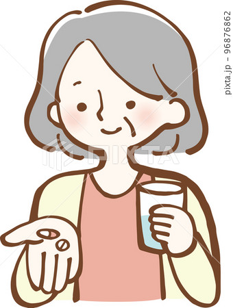 薬を服用するシニア女性 イラスト