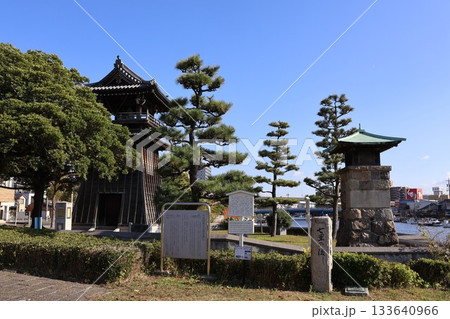 宮の渡し公園、時の鐘と常夜塔