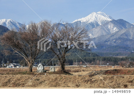 冬の安曇野 常念岳と道祖神