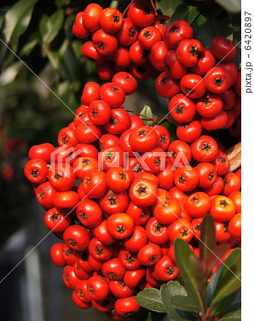 赤いピラカンサスの実(秋、十月)