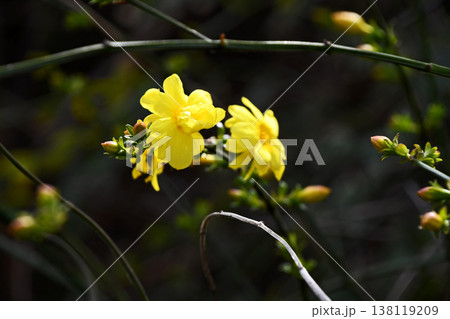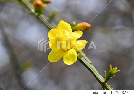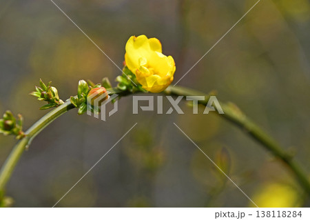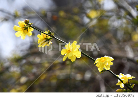 春の公園に咲くオウバイモドキ(ウンナンオウバイ)の黄色い花
