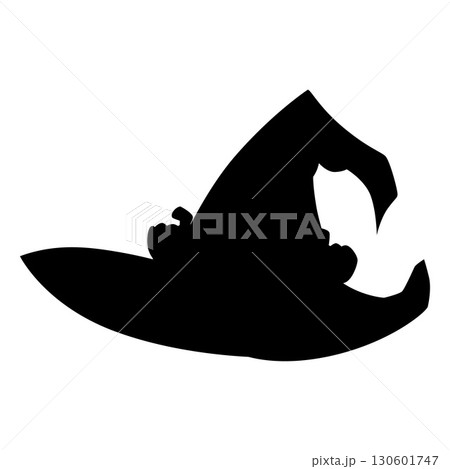 Magic witch hat black silhouette, vector cartoon wizard hat, Halloween party mystical costume, witchcraft accessory