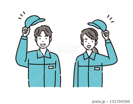 帽子をかぶった作業員の男性が帽子を脱いで挨拶するシンプルなイラスト