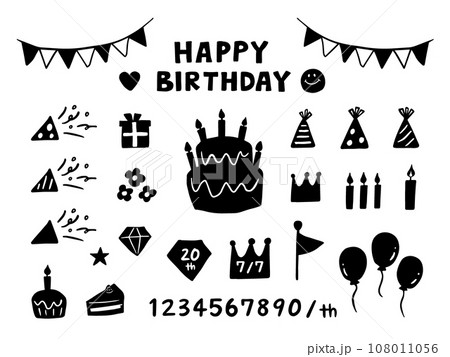 ラインのみ パーテイーと誕生日のモチーフのセットイラストレーション