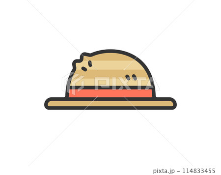 麦わら帽子のアイコン(線画カラー)のイラスト