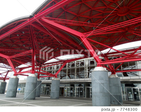 幕張メッセ 国際展示場1-8ホール入口 房総半島の山並みをイメージした中央プラザの赤い屋根