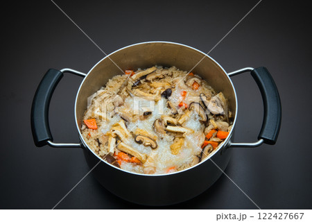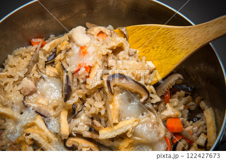 お正月に残ったお餅と米を一緒に炊き込んだ、うまみたっぷりの五目御飯