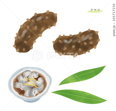 ナマコとナマコ酢小鉢の水彩風イラスト