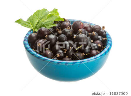 Berries black currant with green leaf. Fresh fruit, isolated on white background.