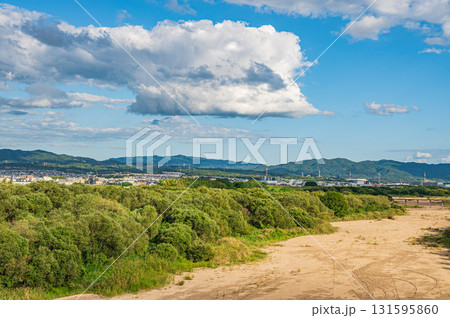 木津川風景 青空に浮かぶ雲 京都府八幡市