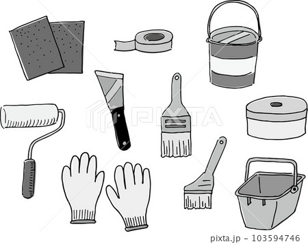 外壁塗装用道具のイラスト(手書き・グレー)