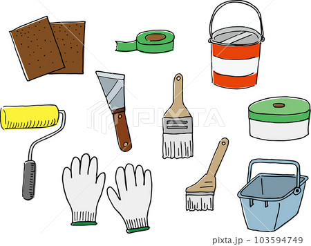 外壁塗装用道具のイラスト(手書き・カラー)