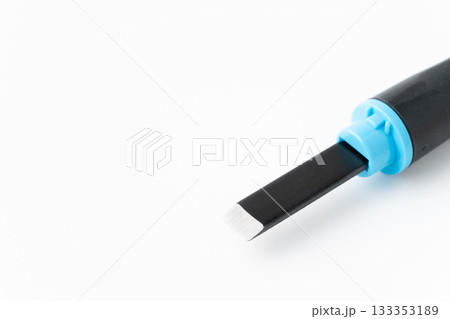 白背景に彫刻刀の刃先のクローズアップ