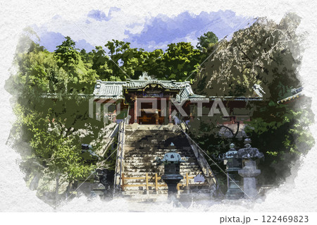 水彩画風 静岡 久能山東照宮 玉垣 静岡県静岡市